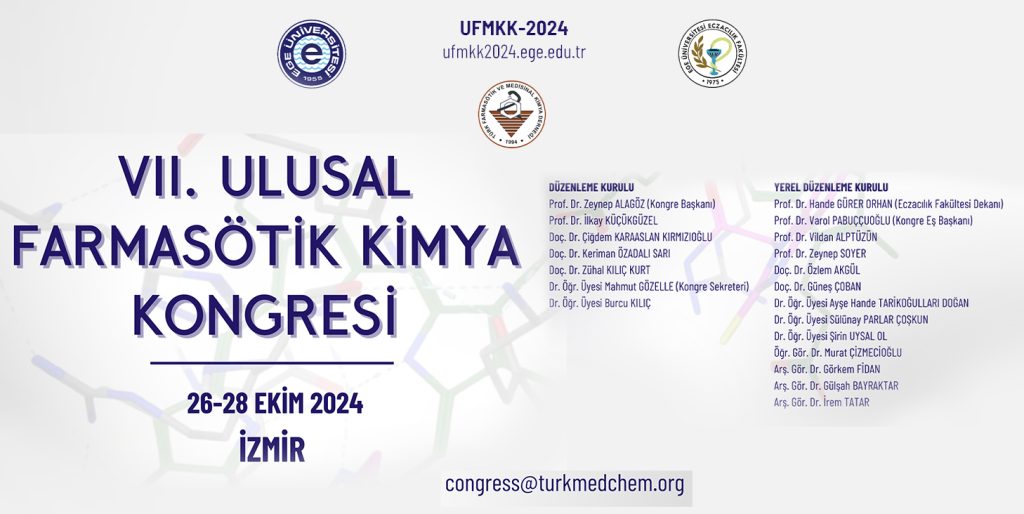 Türk Farmasötik Kimya Derneği’nin Değerli Üyeleri, Ulusal Farmasötik Kimya Kongresi’nin yedincisi 26- 28 Ekim 2024 tarihleri arasında Ege Üniversitesi, Eczacılık Fakültesi ev sahipliğinde, İzmir’de düzenlenecektir. Bu kongrede, akademik çalışmaların en kıymetli sonuçlarından olan yüksek lisans ve doktora tez sunumlarının yanı sıra tez dışı sunumlara da (sözlü/poster) yer verilerek kongre kapsamının genişletilmesine karar verilmiştir. Kongrede sunulacak […]